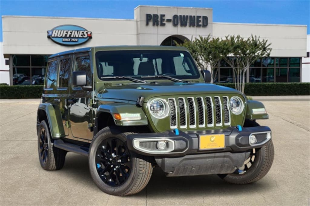 Recent Arrival! Certified. Clean CARFAX. Sarge Green Clearcoat 2023 Jeep Wrangler Sahara 4xe Sahara 4xe 8-Speed Automatic 2.0L I4 DOHC 4WD Cold Weather Group (Heated Front Seats and Heated Steering Wheel), Quick Order Package 29P Sahara, FCA US LLC Certified Pre-Owned Certified, 2.0L I4 DOHC, 3.73 Rear Axle Ratio, 4-Wheel Disc Brakes, 9 Speakers, ABS brakes, Air Conditioning, Alloy wheels, AM/FM radio: SiriusXM, Apple CarPlay/Android Auto, Auto-dimming Rear-View mirror, Automatic temperature control, Body Color 3-Piece Hard Top, Brake assist, Compass, Delay-off headlights, Driver door bin, Driver vanity mirror, Dual front impact airbags, Dual front side impact airbags, Electronic Stability Control, Emergency communication system: SiriusXM Guardian, Freedom Panel Storage Bag, Front anti-roll bar, Front Bucket Seats, Front Center Armrest w/Storage, Front dual zone A/C, Front fog lights, Front License Plate Bracket, Front reading lights, Fully automatic headlights, Garage door transmitter, Heated door mirrors, Illuminated entry, Integrated roll-over protection, Leather Shift Knob, Low tire pressure warning, Navigation System, Occupant sensing airbag, Outside temperature display, Panic alarm, ParkView Rear Back-Up Camera, Passenger door bin, Passenger vanity mirror, Power door mirrors, Power steering, Power windows, Premium McKinley Trimmed Seats, Radio data system, Radio: Uconnect 4C Nav w/8.4" Display, Rear anti-roll bar, Rear reading lights, Rear seat center armrest, Rear Window Defroster, Rear Window Wiper/Washer, Remote keyless entry, Security system, Side Steps, Speed control, Split folding rear seat, Sport Suspension, Steering wheel mounted audio controls, Tachometer, Telescoping steering wheel, Tilt steering wheel, Traction control, Trip computer, Variably intermittent wipers, Voltmeter, and Wheels: 20" x 8" Fully Painted Aluminum.