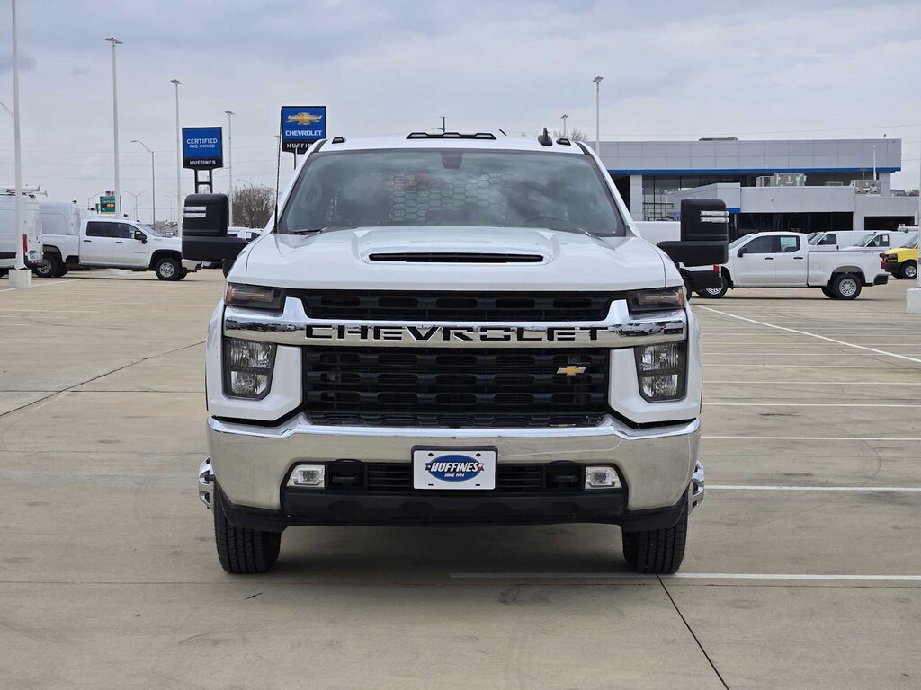 ENGINE, DURAMAX 6.6L TURBO-DIESEL V8 B20-Diesel compatible, (445 hp [332 kW] @ 2800 rpm, 910 lb-ft of torque [1220 Nm] @ 1600 rpm), CONVENIENCE PACKAGE includes (CJ2) dual-zone automatic climate control, (A2X) 10-way power driver seat including power lumbar, (KA1) heated driver and passenger seats, (KI3) heated steering wheel, (N37) manual tilt/telescoping steering column, (C49) rear-window defogger, (AVJ) Keyless Open and Start, (N06) steering column lock, (BTV) Remote Start, (UTJ) content theft alarm, (T3U) LED fog lamps, (AZ3) front 40/20/40 split-bench with under-seat storage, (KPA) auxiliary power outlet and (USS) 2 charge-only USB ports for second row, MIRRORS, OUTSIDE POWER-ADJUSTABLE VERTICAL TRAILERING WITH HEATED AND AUTO-DIMMING UPPER GLASS lower convex mirrors, turn signal indicators, puddle lamps, perimeter lighting, auxiliary lighting, manual folding/manual extending (extends 3.31" [84.25mm]) Includes (DD8) auto-dimming rearview mirror.), AUDIO SYSTEM, CHEVROLET INFOTAINMENT 3 SYSTEM, 8" DIAGONAL COLOR TOUCHSCREEN, AM/FM STEREO. Additional features for compatible phones include: Bluetooth® audio streaming for 2 active devices, voice command pass-through to phone, wired Apple CarPlay® and Android Auto® capable. (STD), TRANSMISSION, ALLISON 10-SPEED AUTOMATIC WITH INTEGRATED POWER TAKE-OFF (PTO). Chevrolet LT with Summit White exterior and Jet Black interior features a 8 Cylinder Engine with 445 HP at 2800 RPM*.
