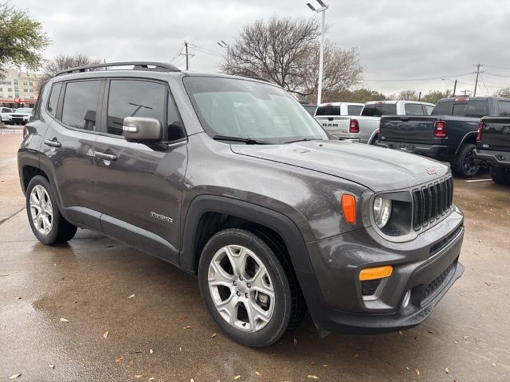 Recent Arrival! Granite Crystal Metallic Clearcoat 2019 Jeep Renegade Limited Limited 9-Speed 948TE Automatic 1.3L I4 FWD Quick Order Package 22D, 3.734 Final Drive Ratio, 4-Wheel Disc Brakes, 6 Speakers, ABS brakes, Air Conditioning, Alloy wheels, AM/FM radio: SiriusXM, Anti-whiplash front head restraints, Apple CarPlay/Android Auto, Auto-dimming Rear-View mirror, Automatic temperature control, Body Color Roof, Brake assist, Compass, Delay-off headlights, Driver door bin, Driver vanity mirror, Dual front impact airbags, Dual front side impact airbags, Electronic Stability Control, Four wheel independent suspension, Front anti-roll bar, Front Bucket Seats, Front Center Armrest, Front dual zone A/C, Front fog lights, Front reading lights, Fully automatic headlights, Heated door mirrors, Heated front seats, Heated steering wheel, Illuminated entry, Knee airbag, Leather Shift Knob, Leather steering wheel, Leather Trimmed Bucket Seats, Low tire pressure warning, Manufacturer's Statement of Origin, Normal Duty Suspension, Occupant sensing airbag, Outside temperature display, Overhead airbag, Panic alarm, ParkView Rear Back-Up Camera, Passenger door bin, Passenger vanity mirror, Power door mirrors, Power driver seat, Power steering, Power windows, Radio data system, Radio: Uconnect 4 w/7" Display, Rain sensing wipers, Rear anti-roll bar, Rear seat center armrest, Rear window defroster, Rear window wiper, Remote keyless entry, Roof rack: rails only, Speed control, Split folding rear seat, Spoiler, Steering wheel mounted audio controls, Stop-Start Multiple VSM System, Tachometer, Telescoping steering wheel, Tilt steering wheel, Traction control, Trip computer, Turn signal indicator mirrors, Variably intermittent wipers, Voltmeter, and Wheels: 18" x 7.0" Painted Aluminum.