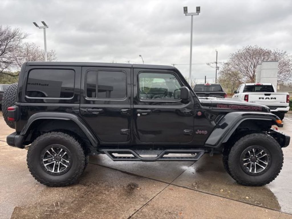 Recent Arrival! Certified. CARFAX One-Owner. Clean CARFAX. Black Clearcoat 2024 Jeep Wrangler Rubicon X Rubicon X 8-Speed Automatic 3.6L V6 24V VVT 4WD Quick Order Package 23Y Rubicon X (12.3" Touchscreen Display, 4G LTE Wi-Fi Hot Spot, Acoustic Front Seat Area Carpet, Acoustic Laminated Front Door Glass, Alpine Premium Audio System, Apple CarPlay, Auto High Beam Headlamp Control, Auto-Dimming Rear-View Mirror, Blind Spot & Cross Path Detection, Body Color 3-Piece Hard Top, Connected Travel & Traffic Services, Connectivity - US/Canada, Disassociated Touchscreen Display, Freedom Panel Storage Bag, Google Android Auto, GPS Navigation, HD Radio, Heated Front Seats, Heated Steering Wheel, Integrated Center Stack Radio, Integrated Off-Road Camera, Integrated Voice Command w/Bluetooth, Leather Wrapped Park Brake Handle, Leather Wrapped Shift Knob, MOPAR Hardtop Headliner, Nappa Leather Seats, No Soft Top, ParkSense Rear Park Assist System, Power 4-Way Driver Lumbar Adjust, Power 4-Way Passenger Lumbar Adjust, Power Adjust 8-Way Driver Seat, Power Adjust 8-Way Front Passenger Seat, Premium Door Trim Panel, Radio: Uconnect 5 Nav w/12.3" Display, Rear Window Defroster, Rear Window Wiper/Washer, SiriusXM Radio Service, SiriusXM w/360L, Steel Front Bumper, Steel Rear Bumper, and Universal Garage Door Opener), Quick Order Package 24Y Rubicon X, Trailer Tow Prep Package (7 & 4 Pin Wiring Harness and 700 Amp Maintenance Free Battery), Xtreme 35" Tire Package (35" Tire Suspension, 97 MPH Vehicle Max Speed Calibration, Anti-Lock 4-Wheel Disc Perf Brakes, MOPAR Hinge-Gate Reinforcement, Wheel Flare Extensions, and Wheels: 17" x 8" Machined w/Black Pockets), FCA US LLC Certified Pre-Owned Certified, 4-Wheel Disc Brakes, 8 Speakers, ABS brakes, Air Conditioning, Alloy wheels, AM/FM radio: SiriusXM, Apple CarPlay/Android Auto, Automatic temperature control, Aux Battery, Body Color Rubicon Highline Flare (DISC), Brake assist, Cloth Low-Back Bucket Seats, Compass, Delay-off headlights, Driver door bin, Driver vanity mirror, Dual front impact airbags, Dual front side impact airbags, Electronic Stability Control, Emergency communication system: Jeep Connect, Front anti-roll bar, Front Bucket Seats, Front Center Armrest w/Storage, Front dual zone A/C, Front fog lights, Front License Plate Bracket, Front reading lights, Fully automatic headlights, Heated door mirrors, Illuminated entry, Integrated roll-over protection, Low tire pressure warning, MOPAR Stainless Door Sill Guards, Non-Lock Fuel Cap w/o Discriminator, Occupant sensing airbag, Outside temperature display, Overhead airbag, Panic alarm, ParkView Rear Back-Up Camera, Passenger door bin, Passenger vanity mirror, Performance Suspension, Power door mirrors, Power steering, Power windows, Radio data system, Radio: Uconnect 5 w/12.3" Display, Rear anti-roll bar, Rear reading lights, Remote keyless entry, Security system, Speed control, Split folding rear seat, Steering wheel mounted audio controls, Stop-Start Dual Battery System, Tachometer, Telescoping steering wheel, Tilt steering wheel, Traction control, Trip computer, Variably intermittent wipers, Voltmeter, Warn Winch, and Wheels: 17" x 7.5" Machined/Painted Black.