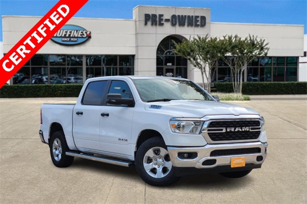CARFAX One-Owner. Clean CARFAX. Bright White Clearcoat 2023 Ram 1500 Big Horn/Lone Star Big Horn/Lone Star 8-Speed Automatic HEMI 5.7L V8 Multi Displacement VVT eTorque RWD Bed Utility Group (MOPAR 4 Adjustable Cargo Tie-Down Hooks, MOPAR Deployable Bed Step, MOPAR Spray In Bedliner, and Pick-Up Box Lighting), Big Horn Level 1 Equipment Group (2nd Row In Floor Storage Bins, 4G LTE Wi-Fi Hot Spot, 8.4" Touchscreen Display, Apple CarPlay, Auto-Dimming Exterior Driver Mirror, Auto-Dimming Rear-View Mirror, Black Exterior Mirrors, Black Premium Power Mirrors, Bluetooth Handsfree Phone & Audio, Class IV Receiver Hitch, Connectivity - US/Canada, Convex Wide-Angle Exterior Mirror Insert, Exterior Mirrors Courtesy Lamps, Exterior Mirrors w/Heating Element, Exterior Mirrors w/Supplemental Signals, For Details, Visit DriveUconnect.com, For More Info, Call 800-643-2112, Front Fog Lamps, Glove Box Lamp, Google Android Auto, GPS Antenna Input, Heated Front Seats, Heated Steering Wheel, Integrated Center Stack Radio, Passenger Sun Visor w/Illuminated Mirror, Power-Folding Mirrors, Radio: Uconnect 5 W w/8.4" Display, Rear Dome w/On/Off Switch Lamp, Rear Power Sliding Window, Rear Window Defroster, SiriusXM Satellite Radio, and USB Host Flip), Quick Order Package 27Z Big Horn (Big Horn Badge), Trailer Tow Group (Trailer Brake Control, Trailer Light Check, Trailer Reverse Steering Control, Trailer Tire Pressure Monitoring System, and Trailer Tow Mirrors), 3 Rear Seat Head Restraints, 3.21 Rear Axle Ratio, 4 Way Front Headrests, 4-Wheel Disc Brakes, 48V Belt Starter Generator, 6 Speakers, ABS brakes, Air Conditioning, Alloy wheels, AM/FM radio, Black Trailer Tow Power Mirrors (DISC), Brake assist, Bumpers: chrome, Cloth Bench Seat, Compass, Delay-off headlights, Driver door bin, Dual front impact airbags, Dual front side impact airbags, Electronic Stability Control, Emergency communication system: SiriusXM Guardian, Exterior Parking Camera Rear, Front anti-roll bar, Front Center Armrest w/Storage, Front License Plate Bracket, Front reading lights, Front Seat Back Map Pockets, Front wheel independent suspension, Fully automatic headlights, Global Telematics Box Module (TBM), Heated door mirrors, Illuminated entry, Integrated Voice Command w/Bluetooth, Leather steering wheel, Low tire pressure warning, Manufacturer's Statement of Origin, Occupant sensing airbag, Outside temperature display, Overhead airbag, Overhead console, Panic alarm, Passenger door bin, Passenger vanity mirror, Power door mirrors, Power steering, Power windows, Radio data system, Radio: Uconnect 3 w/5" Display, RAM Grille Badge - Chrome, Rear 60/40 Folding Seat, Rear anti-roll bar, Rear seat center armrest, Rear step bumper, Remote keyless entry, Speed control, Split folding rear seat, Steering wheel mounted audio controls, Tachometer, Telescoping steering wheel, Tilt steering wheel, Traction control, Trip computer, Variably intermittent wipers, Voltmeter, Wheel to Wheel Side Steps, and Wheels: 18" x 8" Cast-Aluminum PainteD.