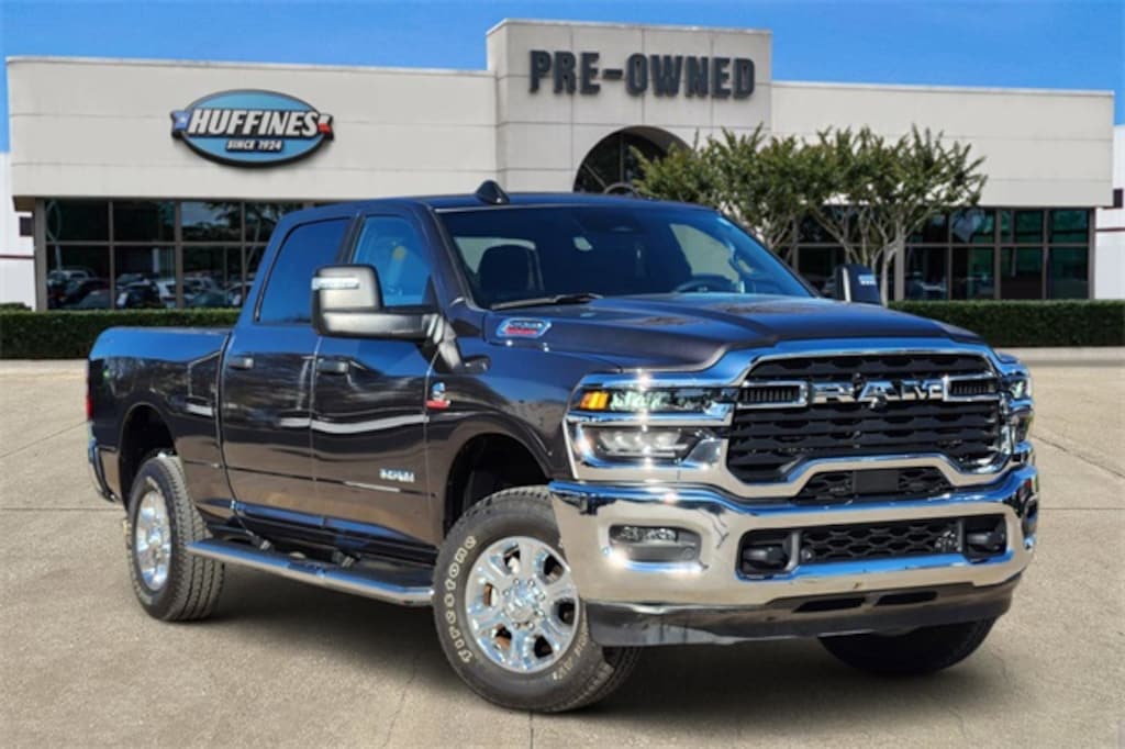 Certified. CARFAX One-Owner. Clean CARFAX. Granite Crystal Metallic Clearcoat 2025 Ram 2500 Big Horn Big Horn 8-Speed Automatic 6.7L I6 4WD Big Horn Level 1 Plus Equipment Group (12" Touchscreen Display, 2 Way Rear Headrest Seat, 2nd Row In Floor Storage Bins, 4 Way Front Headrests, 40/20/40 Split Bench Seat, 4G LTE Wi-Fi Hot Spot, 9 Alpine Speakers w/Subwoofer, Air Conditioning ATC w/Dual Zone Control, Alexa Built-In, Anti-Spin Differential Rear Axle, Apple CarPlay, Auto Power-Folding Mirrors, Auto-Dimming Rear-View Mirror, Black Exterior Mirrors, Connected Travel & Traffic Services, Connectivity - US/Canada, Dual Glove Boxes, Emergency Vehicle Alert System (EVAS), Exterior Mirrors Courtesy Lamps, Exterior Mirrors w/Heating Element, Exterior Mirrors w/Supplemental Signals, Foam Bottle Insert (Door Trim Panel), Folding Flat Load Floor Storage, Footwell Courtesy Lamp, Forward & Reverse Utility Lights, Front Armrest w/Cupholders, Front Center Seat Cushion Storage, Front Seat Back Map Pockets, Global Telematics Box Module (TBM), Glove Box Lamp, Google Android Auto, GPS Antenna Input, GPS Navigation, HD Radio, Integrated Voice Command w/Bluetooth, LED Bed Lighting, Locking Lower Glove Box, Luxury Steering Wheel, Manual Adjust 4-Way Front Passenger Seat, Mirror Running Lights, MOPAR Deployable Bed Step, MOPAR Spray In Bedliner, Off-Road Info Pages, Power 2-Way Driver Lumbar Adjust, Power Adjust 8-Way Driver Seat, Power Adjust Mirrors, Power Adjustable Convex Aux Mirrors, Power Heated Folding Telescopic Mirrors, Power Telescoping Mirrors, Premium Cloth 40/20/40 Bench Seat, Radio: Uconnect 5 Nav w/12.0" Display, Rear 60/40 Folding Seat, Rear Dome w/On/Off Switch Lamp, Remote Start System, Remote USB Port - Charge Only, Selectable Tire Fill Alert, SiriusXM Radio Service, SiriusXM w/360L, Steering Wheel Mounted Audio Controls, Storage Tray, and Trailer Tow Pages), Quick Order Package 24Z Big Horn, Quick Order Package 2UZ Big Horn, FCA US LLC Certified Pre-Owned Certified, 4-Wheel Disc Brakes, 6 Speakers, ABS brakes, Air Conditioning, Alloy wheels, AM/FM radio: SiriusXM, Apple CarPlay/Android Auto, Brake assist, Bumpers: chrome, Chrome Flat Wheel-to-Wheel Side Steps, Cloth 40/20/40 Bench Seat, Compass, Delay-off headlights, Driver door bin, Dual front impact airbags, Dual front side impact airbags, Electronic Stability Control, Front anti-roll bar, Front Center Armrest w/Storage, Front fog lights, Front License Plate Bracket, Front reading lights, Fully automatic headlights, Heated door mirrors, Illuminated entry, Low tire pressure warning, Manual Adjust 4-Way Driver Seat, Manufacturer's Statement of Origin, MOPAR Front & Rear Rubber Floor Mats, Occupant sensing airbag, Outside temperature display, Overhead airbag, Overhead console, Panic alarm, ParkView Rear Back-Up Camera, Passenger door bin, Passenger vanity mirror, Power door mirrors, Power steering, Power windows, Radio data system, Radio: Uconnect 5 w/8.4" Display, Rear anti-roll bar, Rear Folding Seat, Rear seat center armrest, Rear step bumper, Rear window defroster, Remote keyless entry, Security system, Speed control, Tachometer, Tilt steering wheel, Traction control, Trip computer, Turn signal indicator mirrors, Variably intermittent wipers, Vinyl 2nd Row Seat, Voltmeter, and Wheels: 18" x 8.0" Polished Aluminum.